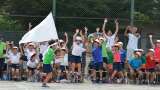 低学年リレー。熱戦の結果は、1位緑(白)、2位赤(赤)、3位黄(赤)、4位青(白...