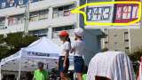 午前中の得点発表です。結果は赤が347点、白が343点。僅差ですが赤組優勢です。...
