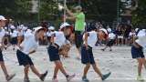 3・4年団体演技「ロープdeダンス」です。マスゲームとなわとびを組み合わせた表現...