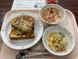 ☆献立☆ ドライカレーチーズトースト 牛乳 卵とトマトのスープ ポテト入りフレン...