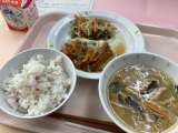 ☆献立☆ 豚キムチ丼 牛乳 もやしときゅうりのごま風味 にらたまスープ ぶどうゼ...