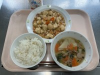 ◆献立◆麦ごはん豆腐の五目炒めワンタンスープ牛乳