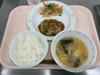 ◆献立◆ごはん豆腐とひじきのハンバーグ塩和えじゃがいもとわかめのみそ汁牛乳