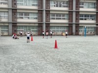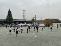 キックベースをしました。ボールを蹴って走って、子供達は大盛り上がりでした。