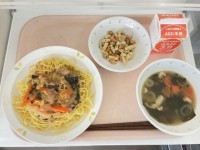 【今日の献立】・あんかけ焼きそば・サクサク磯大豆・わかめスープ・牛乳【使用した主...
