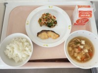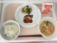 【今日の献立】・ごはん・魚の西京焼き・野菜のおかか和え・のっぺい汁・牛乳【使用し...