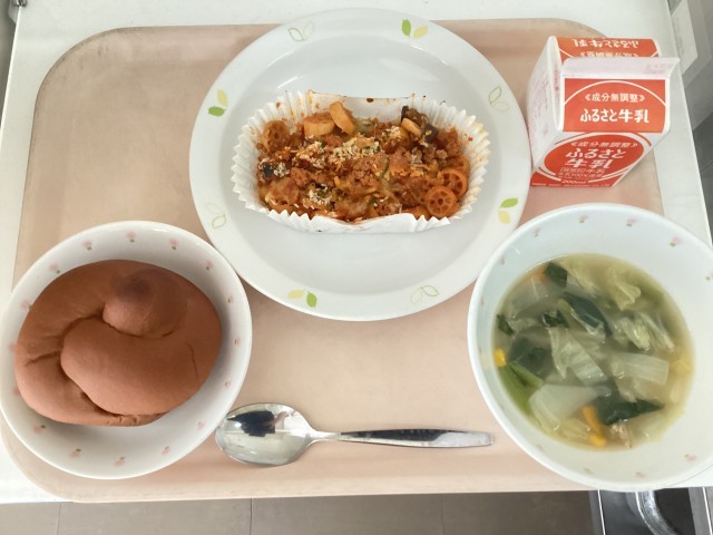 7月14日の給食 公開日 2025/07/14 更新日 2025/07/14 給食 【今日の献立】・ココアパン・なすのグラタン・ベーコンと白菜のスープ・牛乳【使用した食材の主な産地】にんにく/青森 しょうが/高知 たまねぎ/兵庫 トマト/青森 なす/茨城 パセリ/千葉 にんじん/青森 白菜/長野 こまつな/埼玉 給食