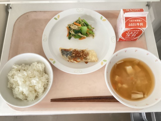 7月16日の給食 公開日 2025/07/16 更新日 2025/07/16 給食 【今日の献立】・ごはん・魚の香味揚げ・野菜のお浸し・みそ汁・牛乳【使用した食材の主な産地】しょうが/高知 ねぎ/茨城 こまつな/埼玉 にんじん/北海道 もやし/群馬 えのきたけ/長野 じゃがいも/茨城 給食