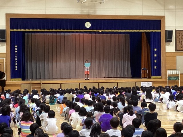 2年生の代表からは、チャイムを守って行動できたこと、子ども祭りが楽しかったこと、2学期はもっと本を読んでいきたいと発表がありました。