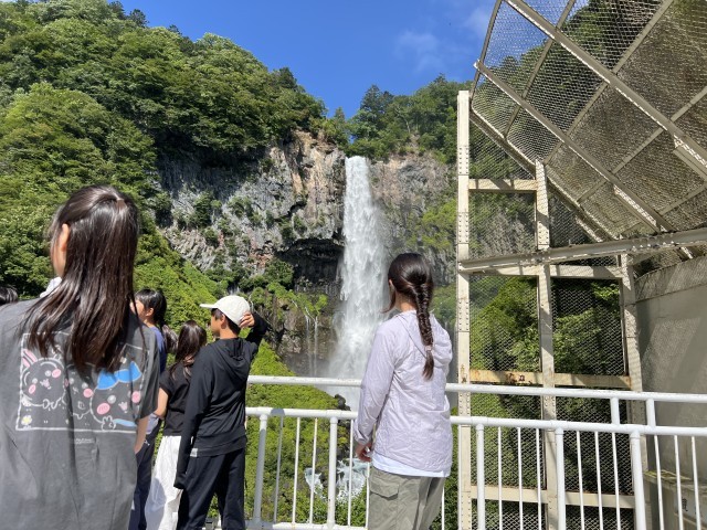 【6年生】日光林間学園(華厳の滝) 公開日 2025/07/31 更新日 2025/07/31 6年生 日本三名瀑の一つである華厳の滝を見学しました。滝の前に立つと、自然の迫力に目を輝かせていました。大自然のすごさを感じられる貴重な体験となりました。