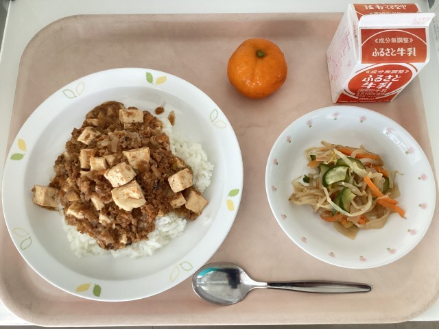 9月3日の給食 公開日 2025/09/03 更新日 2025/09/03 給食 【今日の献立】・マーボー丼・こんにゃくサラダ・冷凍みかん・牛乳【使用した食材の主な産地】にんにく/青森 しょうが/高知 ねぎ/青森 にんじん/北海道 きゅうり/長野 もやし/栃木 たまねぎ/北海道 給食