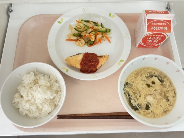 9月30日の給食 公開日 2025/09/30 更新日 2025/09/30 給食 【今日の献立】・ごはん・魚のチリソース・野菜の中華風味・卵スープ・牛乳【使用した食材の主な産地】にんにく/青森 しょうが/高知 ねぎ/青森 キャベツ/群馬 きゅうり/長野 にんじん/北海道たまねぎ/北海道 えのきたけ/新潟 給食