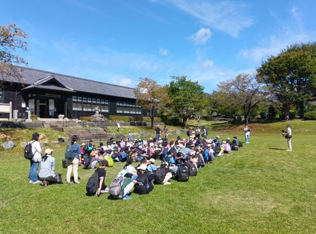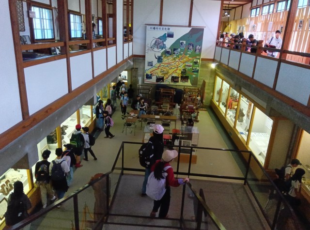 歴史民俗資料館に到着し、班のみんなと一緒に貴重な文化財や民俗資料を見学しました。