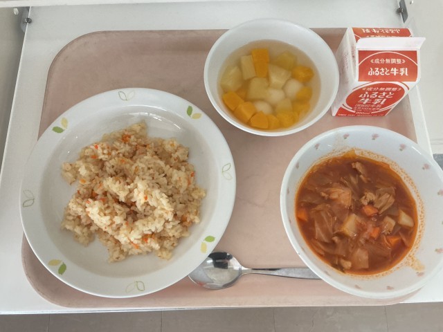 11月5日の給食 公開日 2025/11/05 更新日 2025/11/05 給食 【今日の献立】・ツナライス・ミネストローネ・白玉フルーツポンチ・牛乳【使用した主な食材の産地】にんじん/北海道 しょうが/高知 たまねぎ/北海道 じゃがいも/北海道 セロリー/長野 キャベツ/茨城 給食