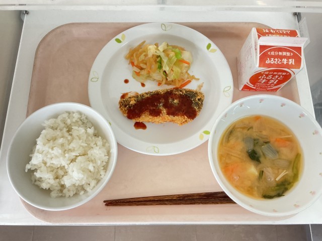 11月12日の給食 公開日 2025/11/12 更新日 2025/11/12 給食 【今日の献立】・ごはん・アジフライ・和風サラダ・みそ汁・牛乳【使用した食材の主な産地】だいこん/千葉 にんじん/北海道 たまねぎ/北海道 じゃがいも/北海道 キャベツ/茨城にんにく/青森 えのきたけ/新潟 こまつな/埼玉 給食