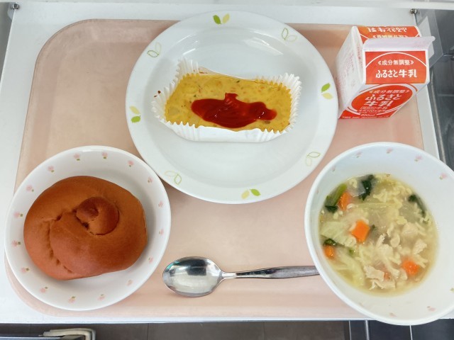 11月14日の給食 公開日 2025/11/14 更新日 2025/11/14 給食 【今日の献立】・ココアパン・スペイン風オムレツ・ABCスープ・牛乳【使用した主な食材の産地】にんにく/青森 たまねぎ/北海道 にんじん/北海道 じゃがいも/北海道 ピーマン/茨城 キャベツ/茨城こまつな/埼玉 給食