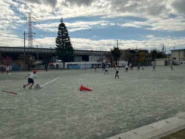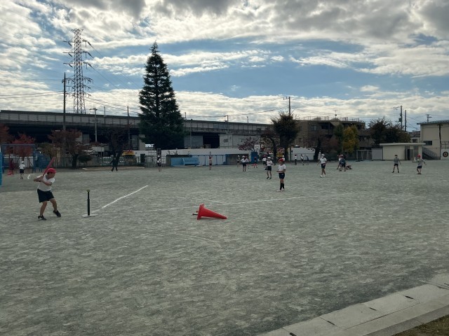 ティーボールでは、ボールを打つ時に、力いっぱい振っていました。