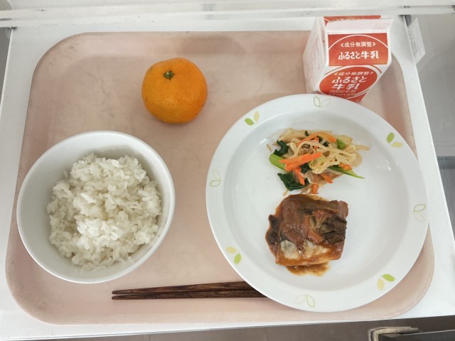 11月27日の給食 公開日 2025/11/27 更新日 2025/11/27 給食 【今日の献立】・ごはん・さばのみそ煮・野菜のお浸し・みかん・牛乳【使用した食材の主な産地】しょうが/高知 ねぎ/新潟 にんじん/北海道 もやし/栃木 こまつな/埼玉 給食