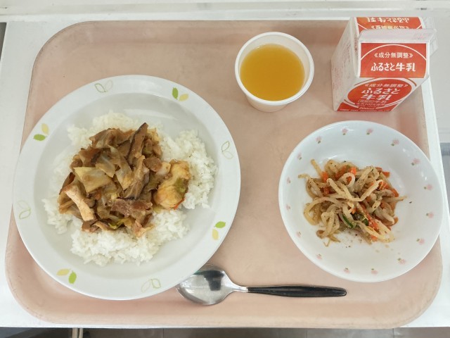 12月23日の給食 公開日 2025/12/23 更新日 2025/12/23 給食 【今日の献立】・回鍋肉丼・野菜の中華風ごま和え・みかんゼリー・牛乳【使用した主な食材の産地】にんにく/青森 しょうが/高知 たまねぎ/北海道 ねぎ/千葉 にんじん/愛知 キャベツ/愛知もやし/群馬 きゅうり/宮崎 給食