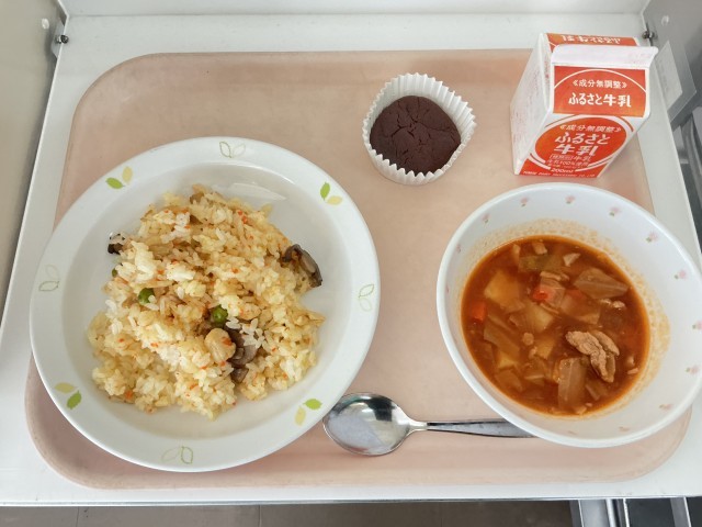 2月13日の給食 公開日 2026/02/13 更新日 2026/02/13 給食 【今日の献立】・チキンピラフ・ミネストローネ・チョコレートケーキ・牛乳【使用した主な食材の産地】にんじん/千葉 たまねぎ/北海道 セロリー/愛知 じゃがいも/鹿児島 キャベツ/愛知 給食