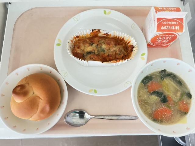 3月9日の給食 公開日 2026/03/09 更新日 2026/03/09 給食 【今日の献立】・ミルクパン・ラザニア・ひよこ豆のスープ・牛乳【使用した主な食材の産地】にんにく/青森 たまねぎ/北海道 じゃがいも/北海道 にんじん/千葉 パセリ/千葉キャベツ/愛知 こまつな/埼玉 給食