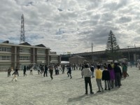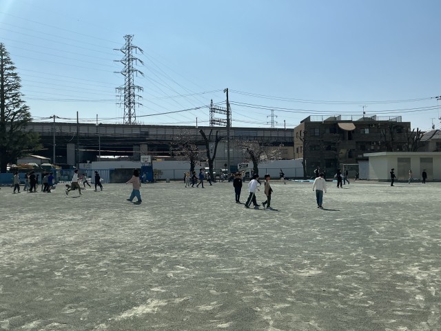 最後の写真は中休みの様子です。写真では見えにくいですが、グラウンドにある桜も咲いてきました。