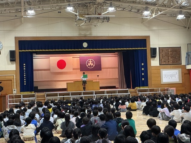 校長先生からは、先日来校していただいた体操の宮川選手の、目標を持つことの大切さについてお話がありました。新学年になっても目標を持って学校生活を過ごして欲しいです。
