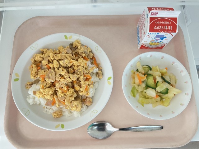 4月20日の給食 公開日 2026/04/21 更新日 2026/04/21 給食 【今日の献立】・親子丼・ピリ辛野菜・牛乳【使用した主な食材の産地】たまねぎ/北海道 にんじん/徳島 ごぼう/青森 キャベツ/愛知 きゅうり/埼玉 給食