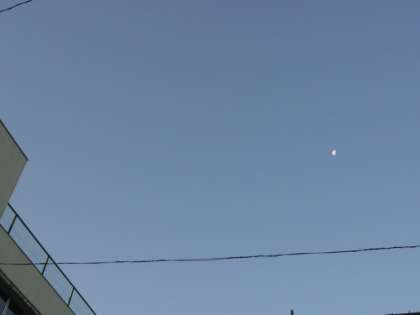 朝日が東の空に上った頃、西の空に月が見えました。(12月5日)