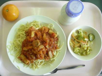 今日の給食 公開日 2012/12/07 更新日 2012/12/07 その他の教育活動 今日は、スパゲッティーペスカトーレでした。魚介類のうまみがたっぷりのソースでした。(12月6日) 《今日の産地》 玉ねぎ:北海道 にんじん:千葉 じゃがいも:北海道 ごぼう:青森 きゅうり:鹿児島、高知 キャベツ:埼玉 もやし:神奈川 鶏もも:鹿児島 いか:青森 みかん:愛媛