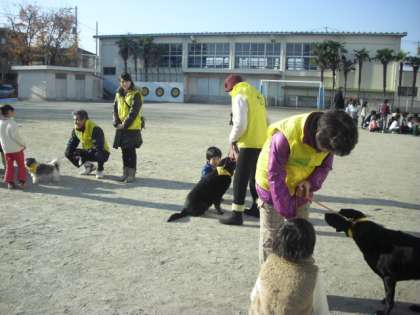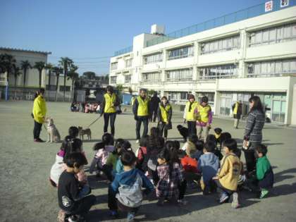 喜多見小学校にわんわんパトロールがやってきました。たくさんの犬たちと交流しました。(12月8日)