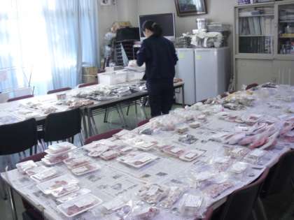 太子堂調理場より 公開日 2012/12/15 更新日 2012/12/15 その他の教育活動 『物資選定委員会』の準備をしている様子です。 毎月1回、太子堂調理場では、いくつかの業者から翌月に使う予定の食材のサンプルを取り寄せ、どこの業者の商品を使うか選んでいます。料理に合った切り方か、調理しやすいか、鮮度はよいか、価格は適切か、産地はどこか、味は美味しいか等を話し合いながら1つ1つの食材を選んでいきます。(12月14日)
