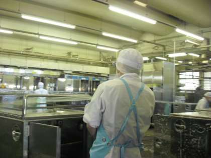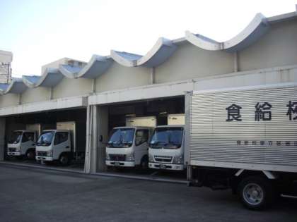 太子堂調理場より 公開日 2012/12/16 更新日 2012/12/16 その他の教育活動 午後2時半頃の太子堂調理場の様子です。各学校から食器をのせたトラックが次々に返って来ました。調理員さんが後片づけをしています。(12月14日)
