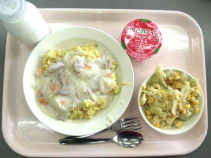 今年最後の給食です。デザートにいちごアイスがでました。(12月19日)