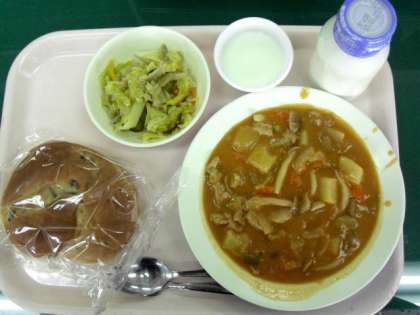 今日は、昨日の給食で出せなかった、「おかしな目玉焼き」の白身部分(ミルクゼリー)が出ました。ミルクゼリーは、好きな子と苦手な子がいて、好みが分かれていました。  (1月16日)