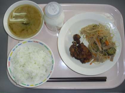 今日は、鶏のから揚げが出ました。みそ汁も温かかったです。(1月23日)
