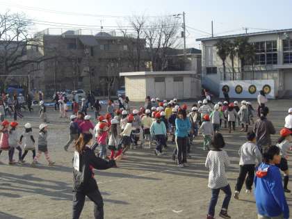 全校児童でふえ鬼をしました。鬼は集会委員会と先生方です!(1月25日)