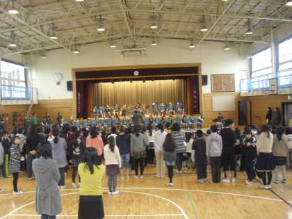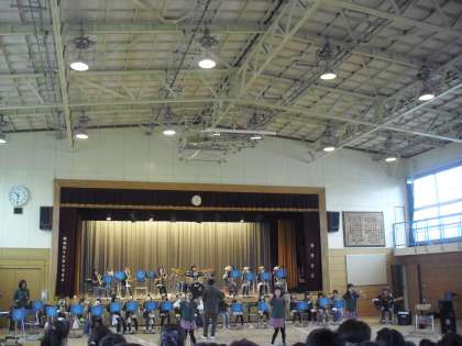 20分休みに、体育館で金管バンドクラブのコンサートがありました。(2月6日)