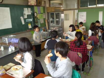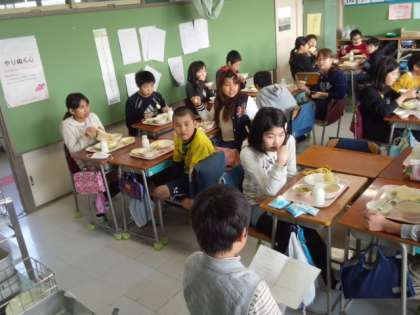給食時間に、6年生の教室に3月に行われる6年生を送る会のアンケートに行きました。(2月7日)