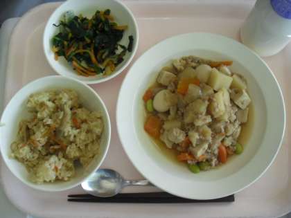 今日は、『きんぴらご飯』でした。しっかりした味付けでした。(2月13日)