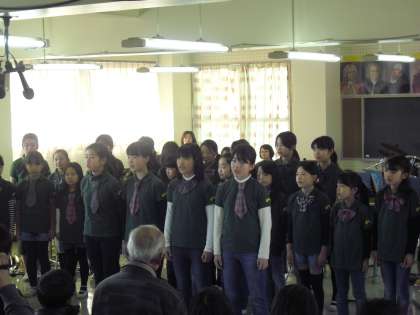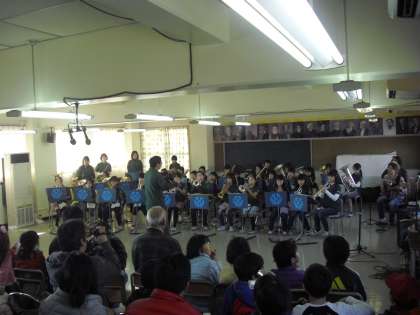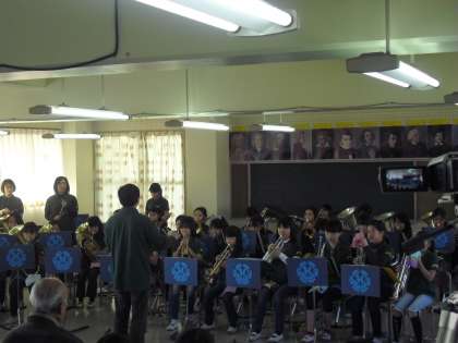 音楽室で金管バンドクラブの定期演奏会が行われました。ソロやダンス、合唱のプログラムがありました。(2月16日)