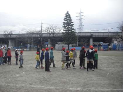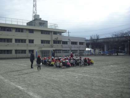 1年生と5年生の交流集会です。こちらは「ドンジャンケンポン」とおにごっこ「逃走中」をしました。元気いっぱい走りました。(2月18日)