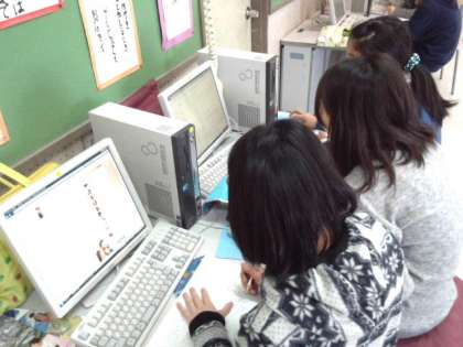 日本と関係の深い国についてコンピュータや図書室の本を使って調べています。(2月21日)