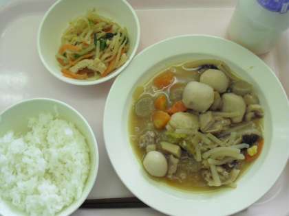 今日は、『とりと里芋のうま煮』でした。ご飯と煮物の組み合わせはよく残る組み合わせですが、今日はよく食べていました。(3月11日)