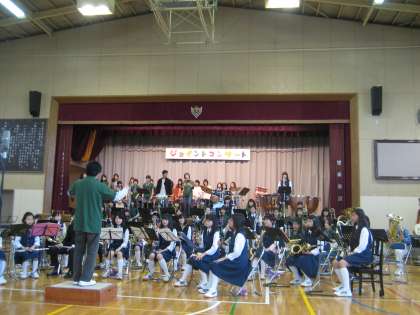 喜多見中学校で、喜多見中学校吹奏楽部と喜多見小学校金管バンドクラブのジョイントコンサートが行われました。(3月24日)