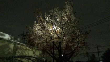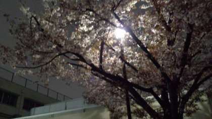 街灯に照らされている桜も満開が過ぎました。(4月1日)