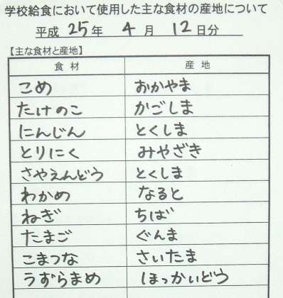 *たけのこごはん *うずら豆の煮豆 *かきたま汁 *牛乳