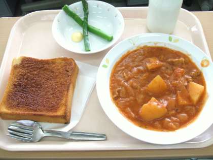 *セサミトースト *トマトシチュー *アスパラガスのマヨネーズ添え *牛乳