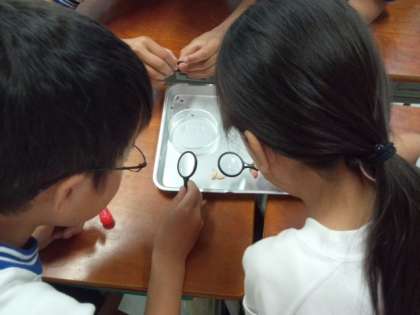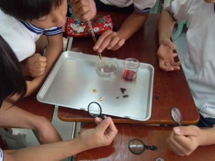 インゲン豆の種子を観察してからヨウ素デンプン反応の実験をしました。(5月22日)