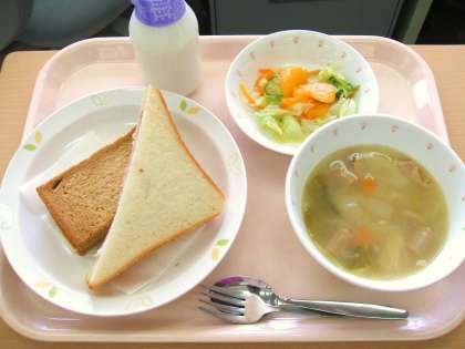 *2色サンド *ポトフ *みかん入りフレンチサラダ *牛乳